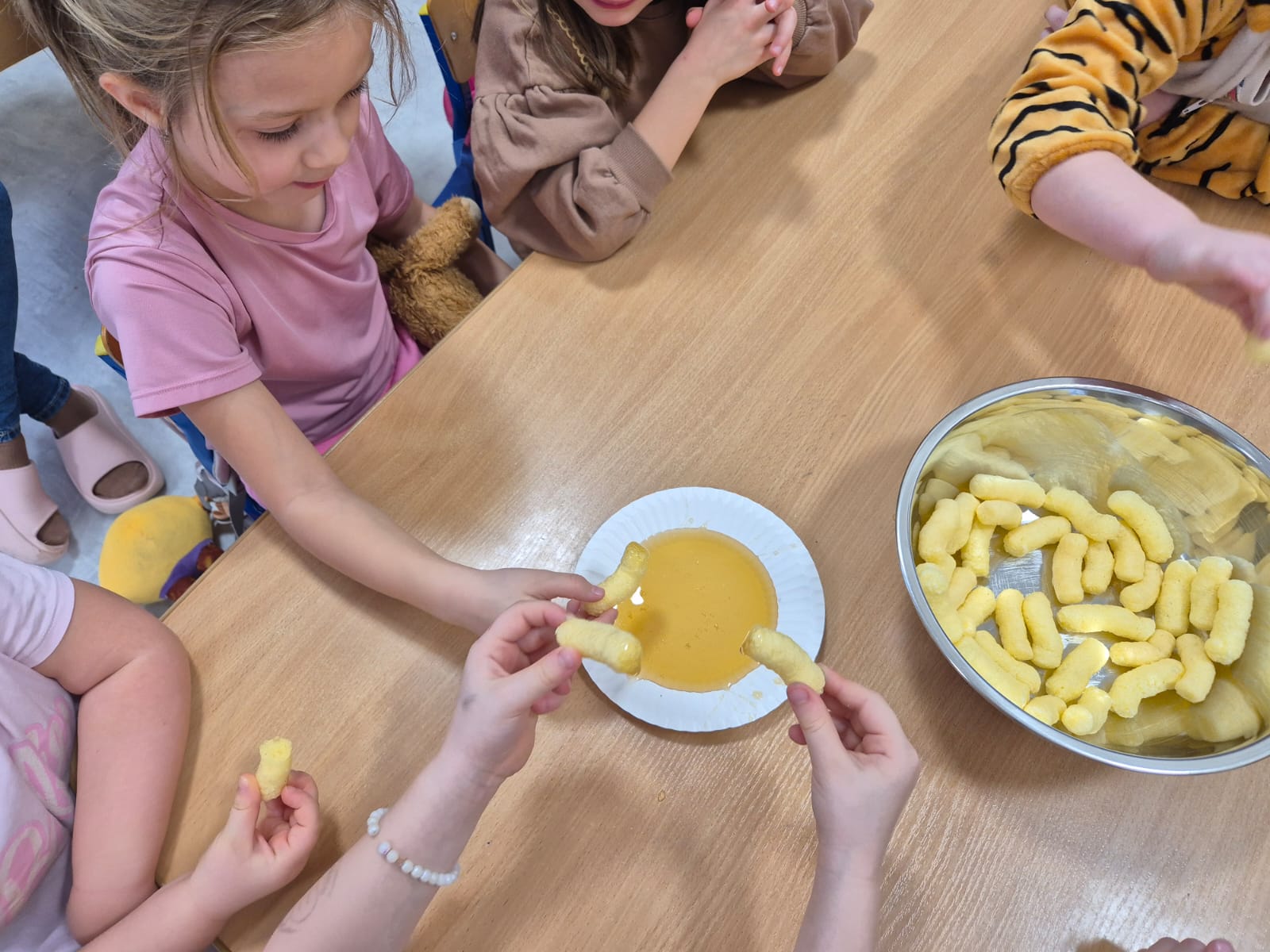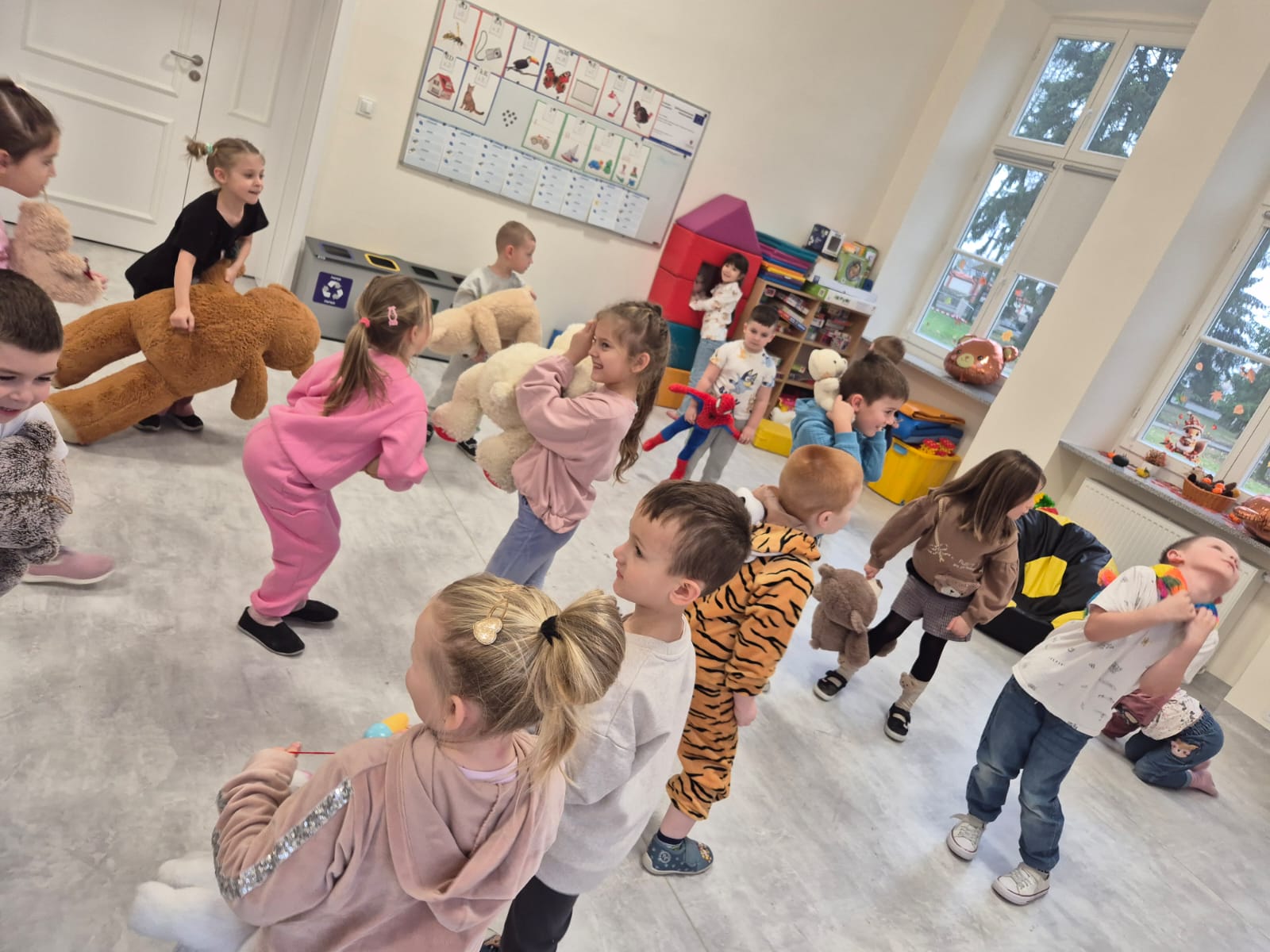 Dzień Pluszowego Misia to święto obchodzone 25 listopada. Miś od pokoleń jest symbolem dzieciństwa i powiernikiem marzeń. Z tej okazji dzieci przyniosły do punktu przedszkolnego swoje ulubione pluszaki – zarówno te duże, jak i malutkie. Nie zabrakło konkursów, zabaw i tańca, które wprowadziły wszystkich w radosny, misiowy nastrój. Dzieci smakowały także misiowy przysmak, co było dla nich dodatkową atrakcją tego wyjątkowego dnia.
